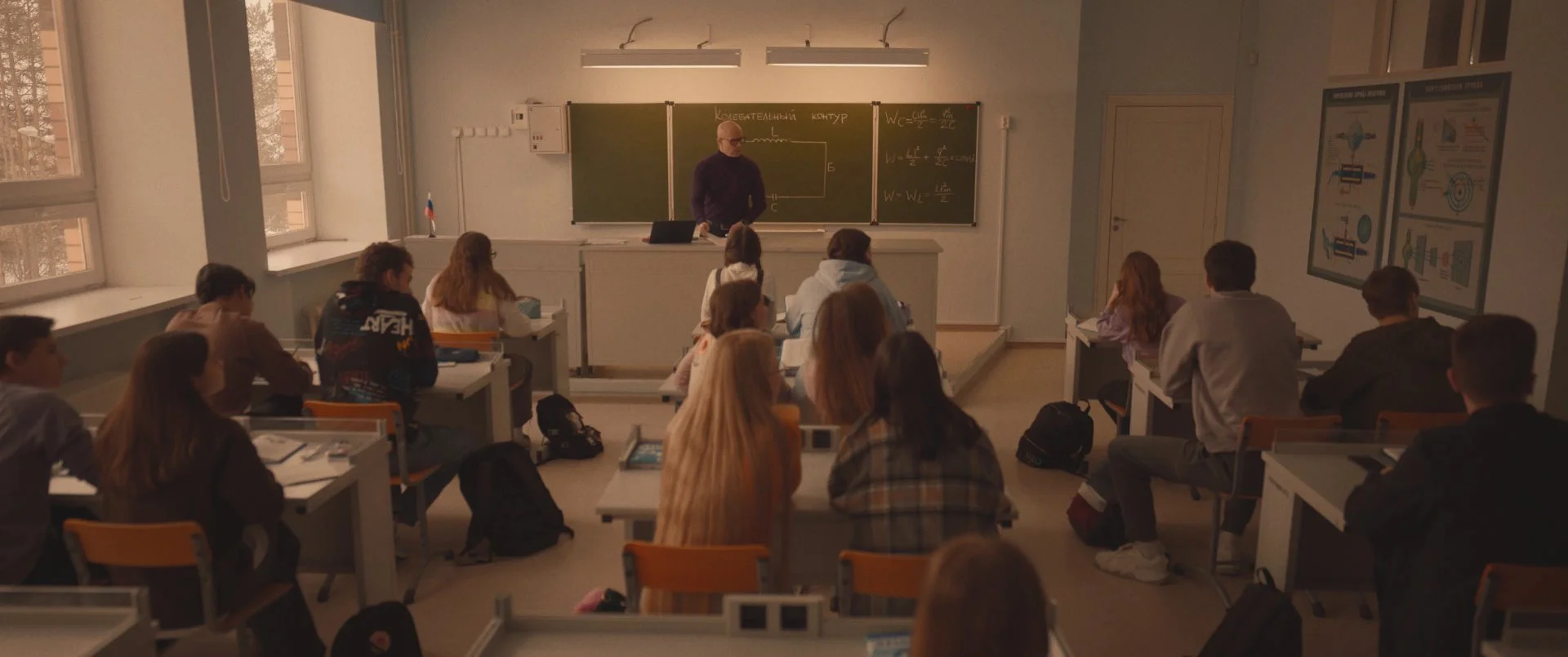 Любой вменяемый зритель с первых кадров угадывает, что Костя - не тот, чем он кажется. Камера сосредотачивается на его заискивающей улыбке перед директрисой, на его елозящих ногах в дорогих туфлях, мы обращаем внимание на его дидактическую манеру говорить. Все знают такую интонацию российских (а кто-то вспомнит и советских) преподавателей. Каждый поймёт, что растатуированный Антон - не зэк и не наркоша, а человек с открытым сердцем, глубоко ранимый и рефлексирующий, в его шутовстве скрывается тяжёлая личная трагедия. Это МакМёрфи в «Полёте над гнездом кукушки», что особенно показательно в эпизоде с «кражей» старшеклассников из скучной экскурсии в неформальное весёлое путешествие.