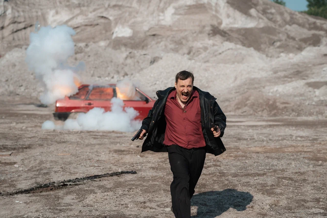 Дмитрий (Евгений Цыганов) - настолько популярный актёр боевиков, что его фирменное непроницаемое выражение лица узнают даже за границей. Но подписанию контракта с голливудскими продюсерами мешает бывший бандит Сергей Иванович (Сергей Гармаш), который хочет закрыть для себя тему девяностых экранизацией автобиографии, и в главной роли он видит исключительно Дмитрия. Съёмки непыльные, гонорар не умещается в подшивку матраса, агент (Степан Девонин) в восторге, но такой сделке мешает одна мелочь. После травмы на съемках Дмитрия неожиданно настигает побочка нервной системы, и теперь вместо драматических эмоций он может только смеяться.