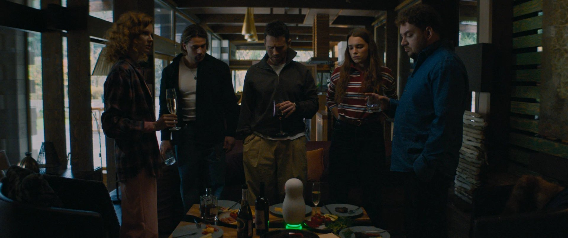 И вот эти пять совсем разных типажей, будто выписанных из классических детективов, вынуждены поддаваться правилам игры, которые им задаёт AI-кукла. Эта говорящая матрёшка, в которую вшиты данные каждого из персонажей (от запросов в интернет-поисковиках до отпечатков пальцев, от чеков в магазинах до медицинских показателей), устраивает прятки и догонялки каждого за каждым в наглухо закрытом доме с непробиваемыми стёклами. Кто не спрятался или не понял условия, - тот потенциальный пассажир скорого поезда на тот свет.