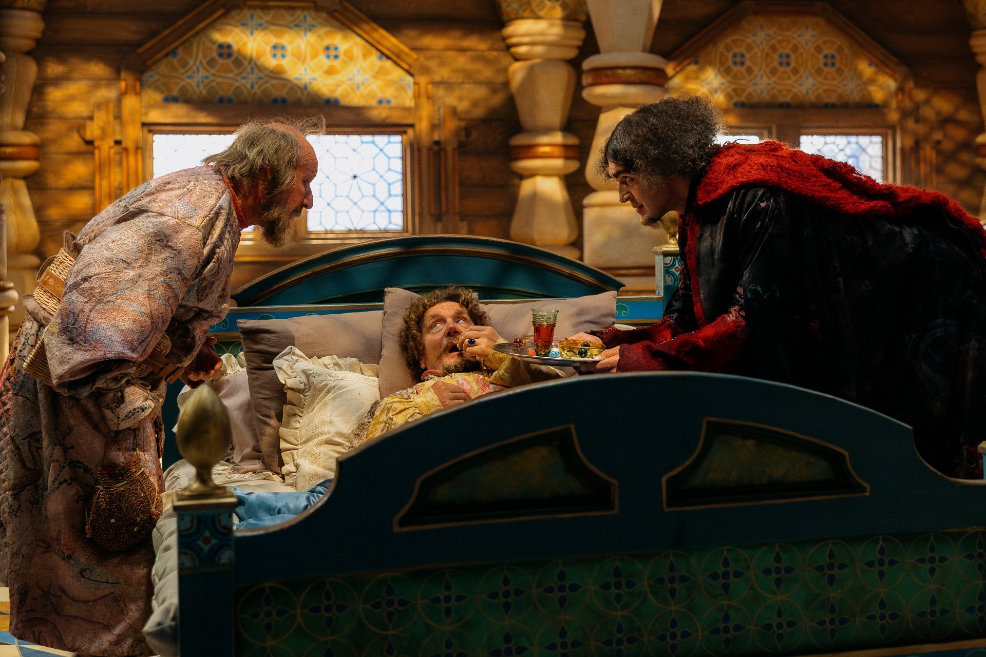Постиронии тут поболее, чем в “Коньке-горбунке” (простить не можем эту попытка сыграть в “актуалочку”), а потому за шутки про «Холопа 3», болезнь «телеграмканал», частушки-интермедии про «жизнь средневековая очень бестолковая», гимн курьеров-доставщиков, Кадышеву на финальных титрах - всё можно простить все претензии к фильму. А их немало, начиная от абсурдной концовки с внезапным появлением Робака-Горыныча и волнения Алёхина «что учёные-то скажут», который с удовольствием на эту науку к финалу забивает, до кривокосой романтической линии.